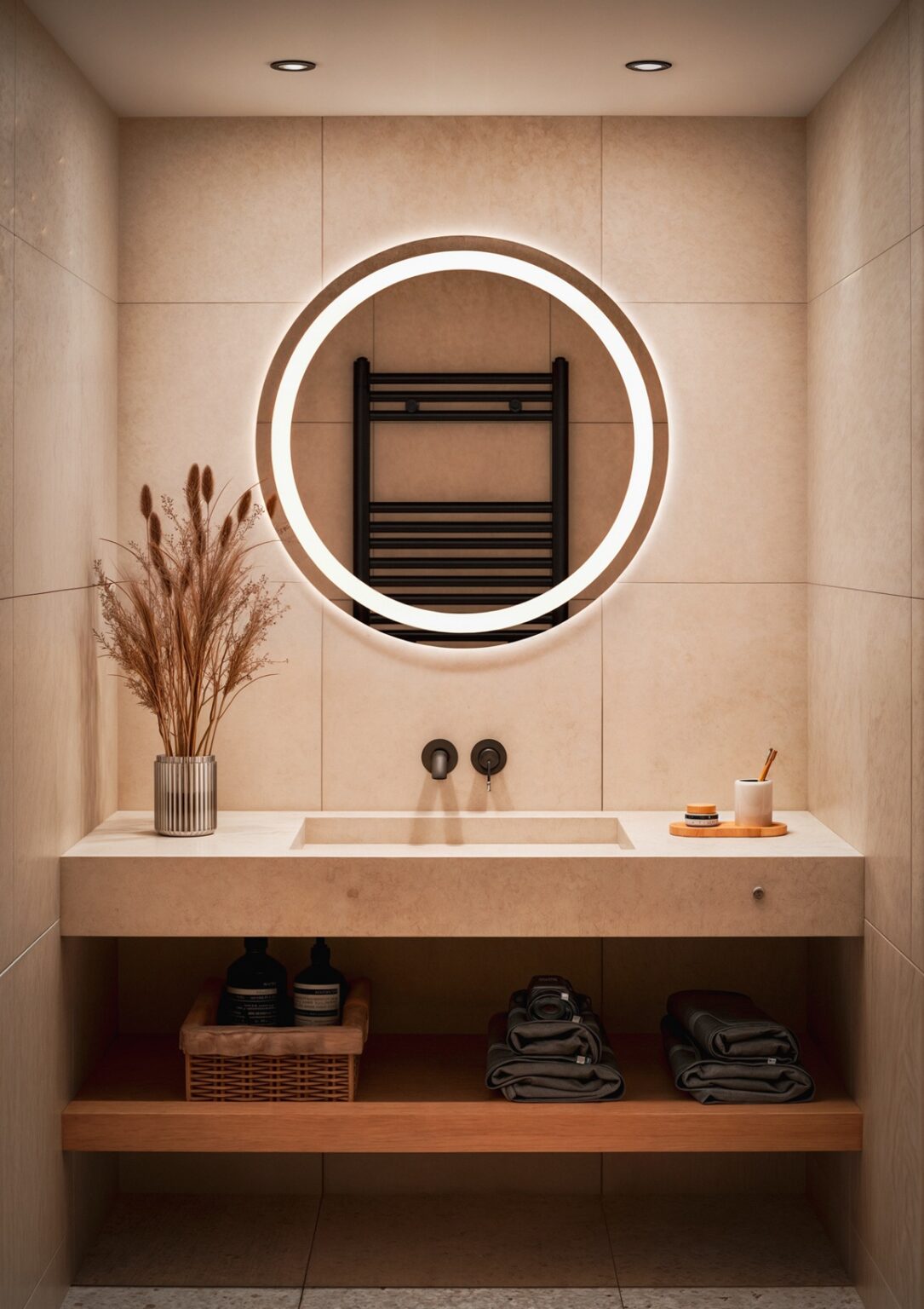 - Design: Okrągły kształt dodaje nowoczesnego charakteru.